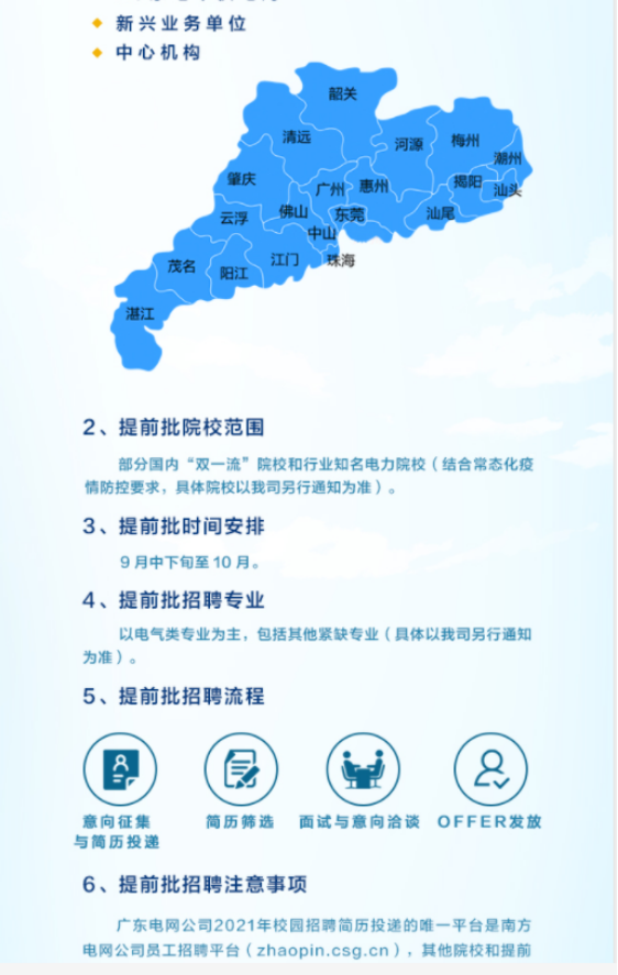 广东电网公司 2021 年提前批校园招聘只采取上述方式进行简历投递,
