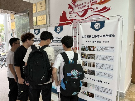 我院学生在观看实验室安全教育展板