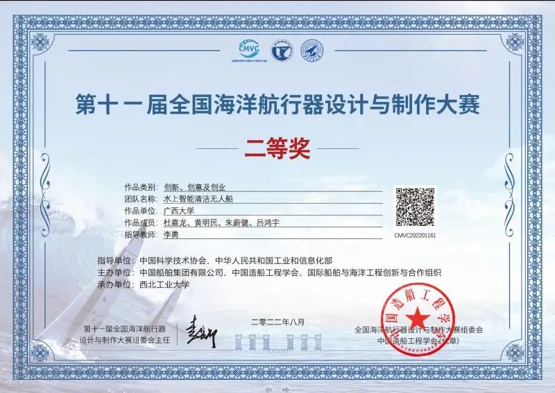 全国海洋航行器设计与制作大赛是由中国科学技术协会、中华人民共和国工业和信息化部指导,中国船舶集团有限公司、中国造船工程学会、国际船舶与海洋工程创新与合作组织主办,面向全国全日制非成人教育的各类高等学校、科研院所在校生的综合性竞赛项目。该赛事已成为我国船舶与海洋工程领域最重要的学生课外实践活动之一。