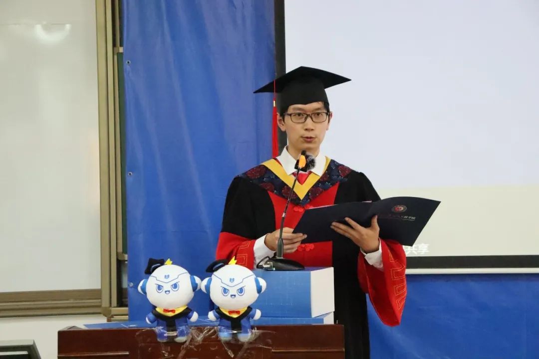 骆耀敬和尹冠婷作为优秀毕业生代表发言。他们回首青春奋斗的日子,向学院老师们表达由衷感恩之情,并祝愿母校再续华章,表达了毕业生将在新征程上继续奋斗,争当时代先锋的追求。