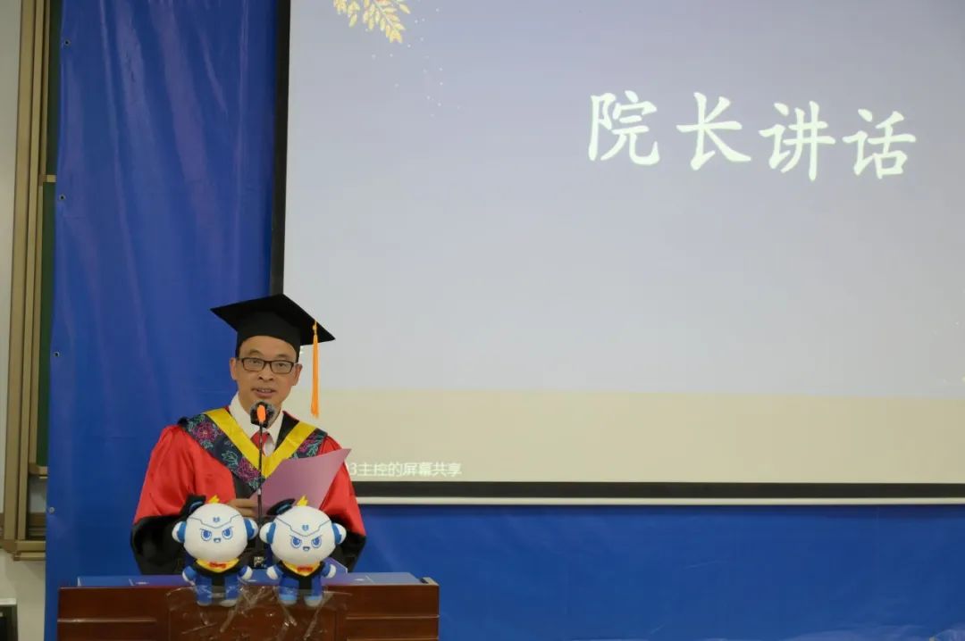院长双丰在讲话中,向全体2022届毕业生送上美好的祝愿与鼓励。他鼓励毕业生在今后的人生发展过程中,脚踏实地追逐梦想,以奋斗之姿点亮未来,做有理想、敢担当、能吃苦、肯奋斗的开路先锋。