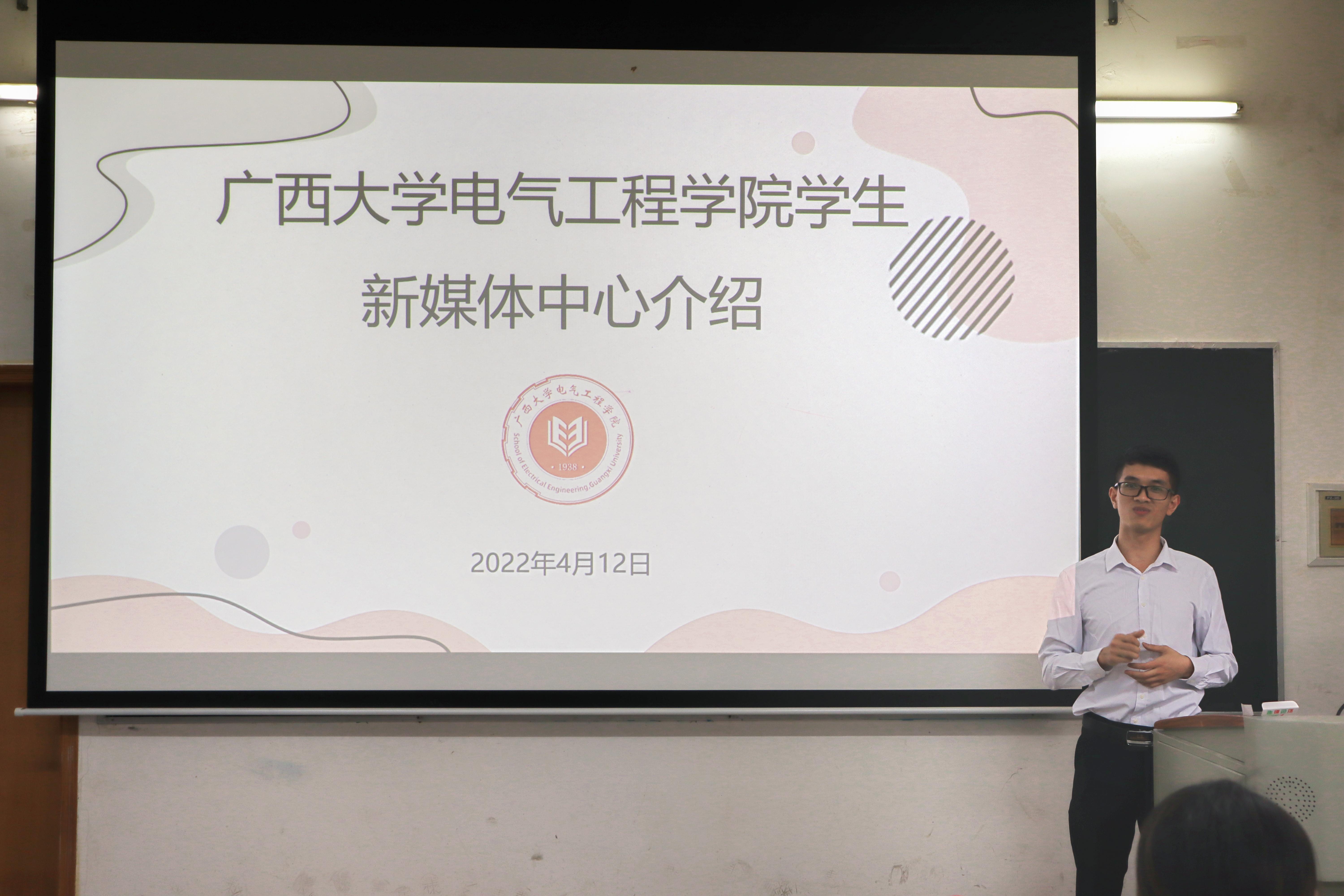 2022年4月12日, 开云kaiyun登录入口学生新媒体中心成立大会在学院304教室召开。学院党委书记梁志坚出席本次会议并致辞,党委副书记雷圆媛宣读学生新媒体中心第一届成员名单。辅导员李鹏、李娟、李楠,兼职辅导员张宝丹、张冬林和党支部、院学生会、院研究生会、众创空间学生代表参加此次会议。会议由辅导员韦俞妃主持。