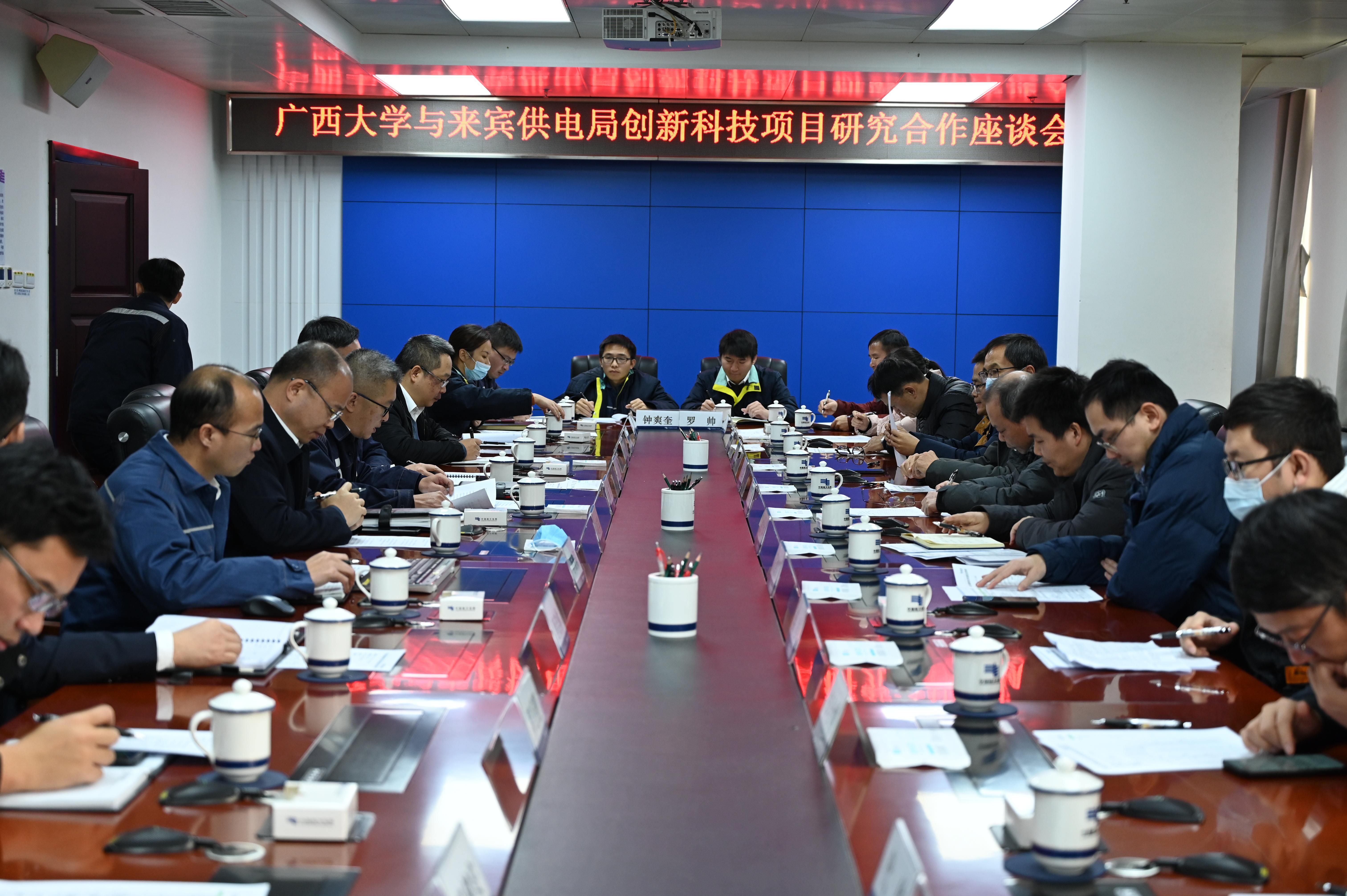 图:广西大学与来宾供电局创新科技项目研究合作座谈会