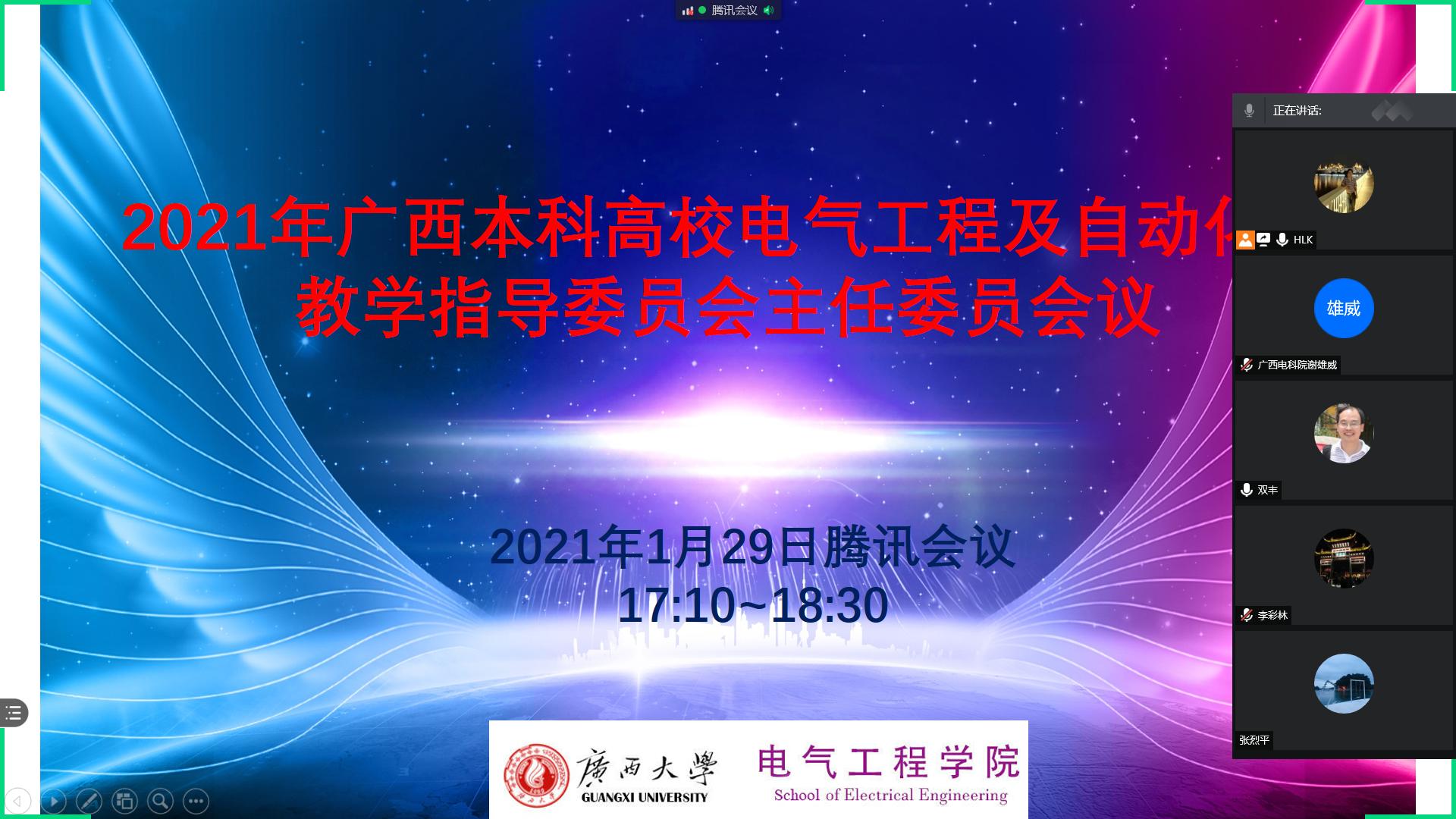 为落实2021年的工作任务,129日通过网络会试形式组织召开2021年广西本科高校电气工程及自动化类教学指导委员会主任、副主任委员以及秘书长工作会议。