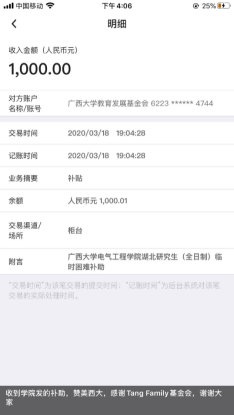 据悉,目前所有补助款均通过银行发放到学生个人账户。大家纷纷对学院和Tang Family基金会表示感谢。