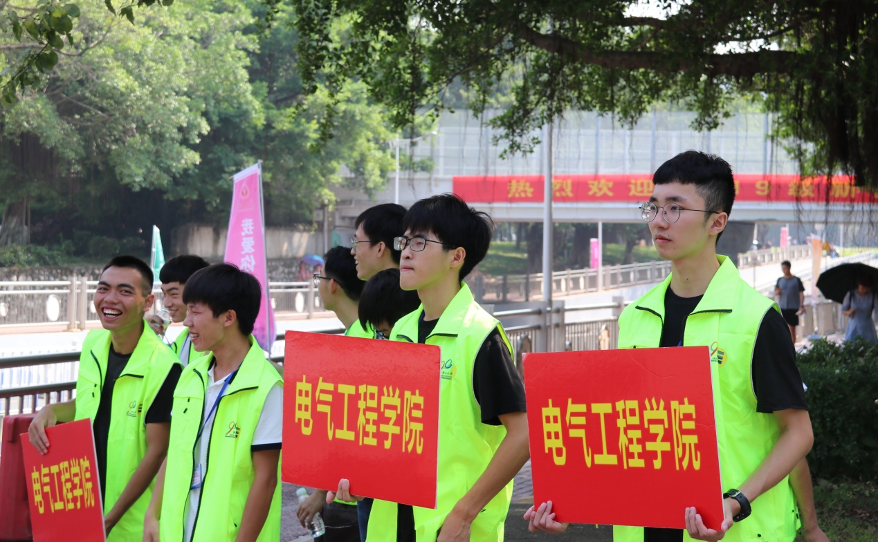7日清晨6点多钟,团委学生会组织的志愿者们就忙开了,布置展台、引导新生、肩挑手扛,与班助一起协助新生完成注册。电气工程学院的志愿者们黄绿色的志愿者服装,成为了新生注册工作中的一道靓丽的风景线。