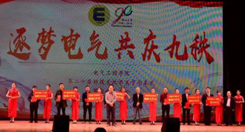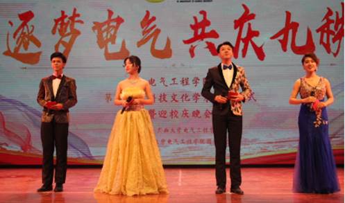 11月23晚上19:30,电气工程学院在学校大礼堂成功举办了第二十届科技文化学术节暨迎校庆晚会。校武装部副部长、学工处副处长刘秋生,校团委副书记、学工处副处长姜玮,电气工程学院党委书记梁京章,院长双丰,副书记梁志坚,副院长胡立坤、林靖宇、学工组老师、各班班主任以及校友企业代表和部分本科生、研究生参加晚会。
