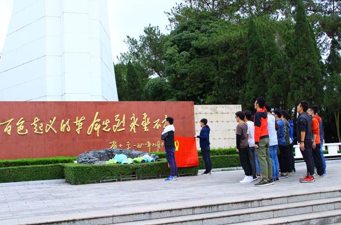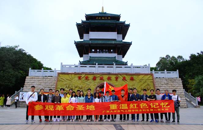 20181117日,开云kaiyun登录入口学生党支部本科生第二支部一行(共25人)赴红色根据地百色开展主题党日活动,近距离接受革命先辈事迹的生动党课教育。在此期间,支部先后参观了百色起义纪念园中的百色起义纪念馆、红军桥、百色廉政教育展厅、右江民族博物馆、百色起义纪念碑,以及工农红军第七军军部旧址——粤东会馆。