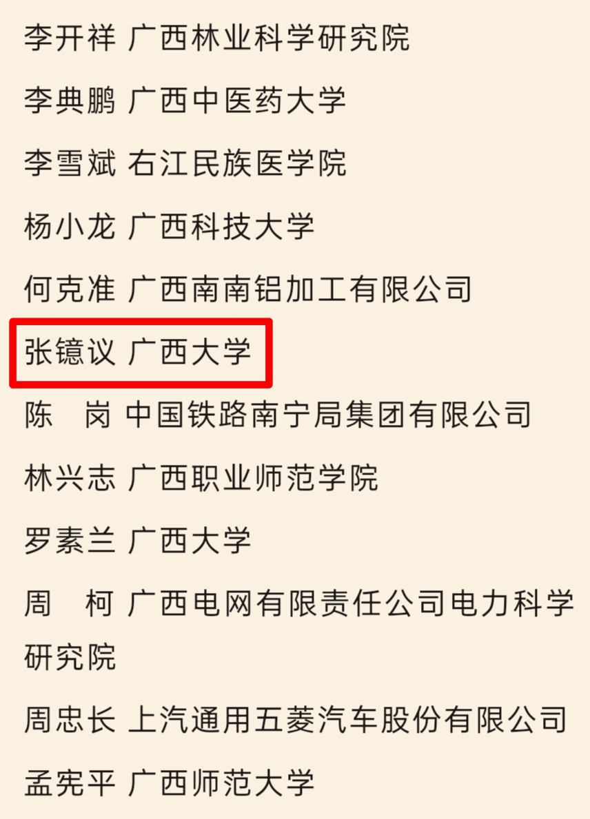 根据《自治区党委人才工作领导小组办公室关于做好第十批广西壮族自治区优秀专家评选工作的通知》(桂人才办〔2022〕4号)文件精神,中共广西壮族自治区委员会、广西壮族自治区人民政府发布《关于表彰“第十批自治区优秀专家”的决定》,授予50名专家“第十批自治区优秀专家”称号, 我院副院长、八桂学者(青年)张镱议教授入选该批次“自治区优秀专家”。