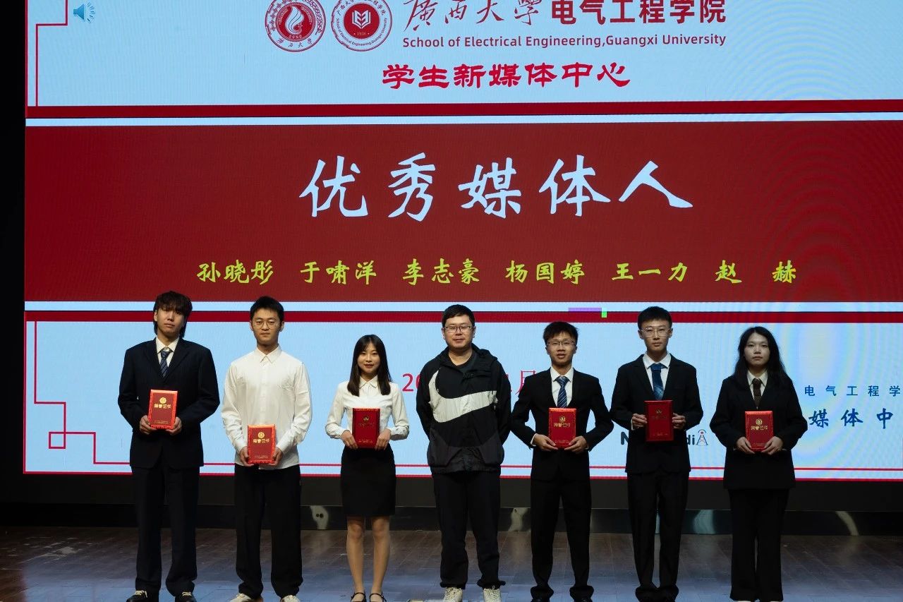 团委副书记蒋冬连老师宣读第二届学生新媒体中心成员表彰名单并为获奖成员颁发荣誉证书,李勇老师宣读优秀媒体人表彰名单并为他们颁奖,韦俞妃老师宣读第二届和第三届学生新媒体中心干部名单并颁发聘书。