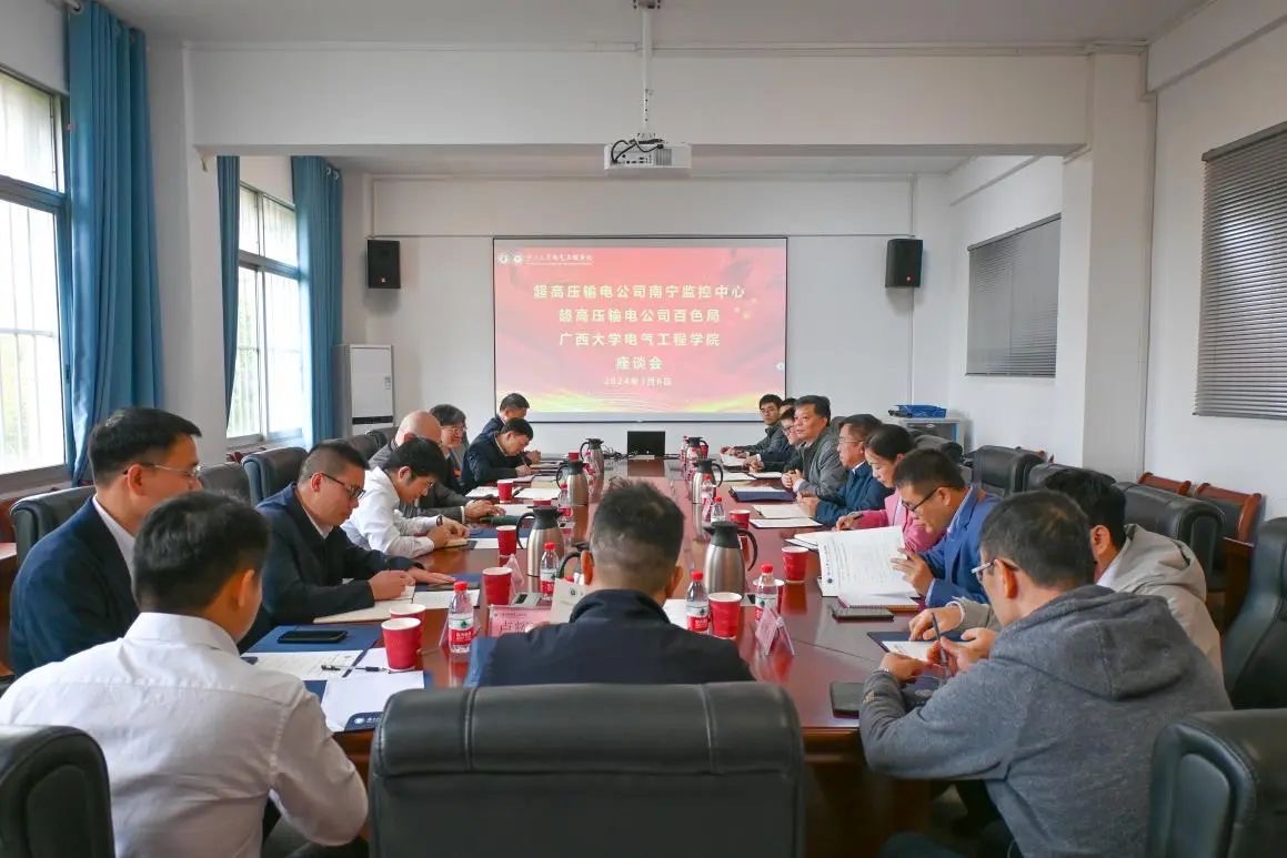 近日,我院与中国南方电网有限责任公司超高压输电公司南宁监控中心(以下简称“南宁监控中心”)、超高压输电公司百色局(以下简称“超高压百色局”)在电气工程学院315会议室开展以“深化产教融合,推动产学研用协同创新”为主题的座谈会。我院党委书记梁志坚主持本次座谈会。