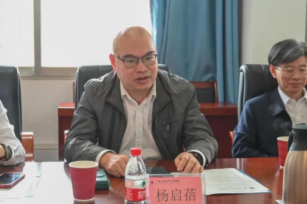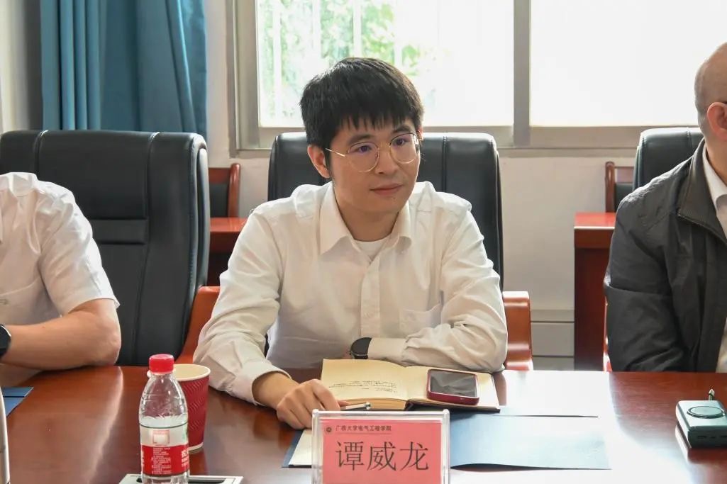 随后,南宁监控中心蔡宇总经理首先介绍监控中心的组织架构、业务规模以及近年来的科技创新成果。杨启蓓副总经理引用习近平总书记在两会上提到的“高质量发展需要因地制宜发展生产力,不能放弃成功产业”讲话精神,表达了中心对技术创新和人才培养的迫切需求。李茂峰副总经理依据中心发展的实际需求提出了校企合作的具体想法,希望综合西大的人才、技术优势和公司的资源,在双方的合作领域能有新的突破,更好地做到产学融合。超高压百色局生产技术部科技经理谭威龙则介绍了百色局的基本发展情况、科研创新情况以及研究生工作站的运行情况,表示希望与学院携手推动研究生工作站的建设。