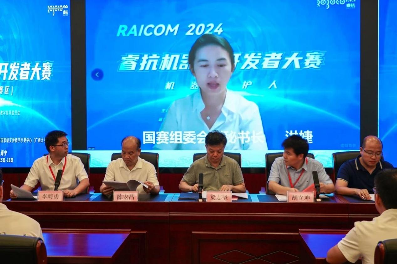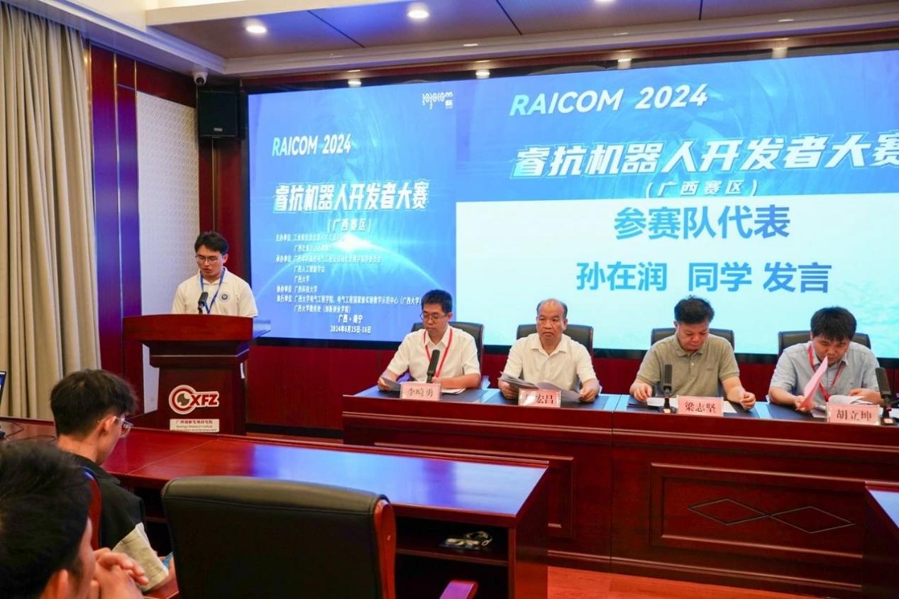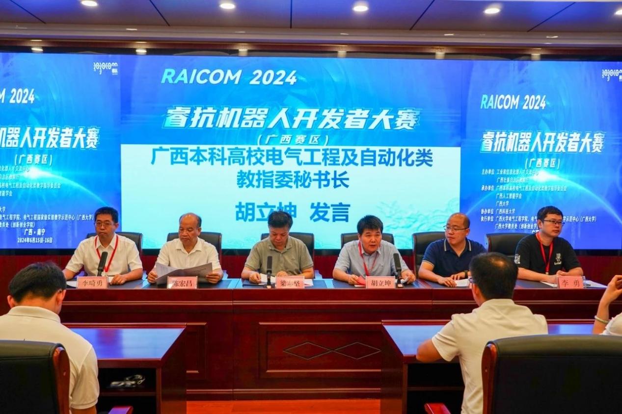 近期,2024睿抗机器人开发者大赛广西赛区决赛在我校举办。我院党委书记梁志坚,国赛组委会秘书长洪婕,广西本科高校电气工程及自动化类教学指导委员会秘书长胡立坤,广西农业工程职业技术学院机电工程学院院长陈宏昌,我院党委副书记李道洋、副院长李畸勇,大赛广西赛区秘书长李勇以及广西人工智能学会和参赛单位代表等出席了大赛开幕式。开幕式由李畸勇副院长主持。 梁志坚表示,睿抗机器人开发者大赛作为国家级重要赛事,是科技创新与人才培养的重要性平台。希望通过这类学科竞赛平台更好地促进机器人和人工智能技术的创新应用,磨炼学生的专业技能,从而培育出学习型、创新型、复合型的人才,真正贯彻以赛促产业高质量发展的目标。 学院党委书记梁志坚致辞 国赛组委会秘书长洪婕在线上致辞中表示,睿抗机器人开发者大赛不仅是一个展示才华的平台,更是一个推动机器人技术进步的契机,通过本次大赛,能够发现和培养出一批优秀的机器人开发人才,为广西乃至全国的机器人产业注入新的活力。 国赛组委会秘书长洪捷发言 胡立坤简要介绍了本次大赛的组织和参赛情况,并指出开云kaiyun登录入口一直以发展战略新兴产业和新型未来产业为方向,致力于提高高等教育质量和教育水平,借助电气工程国家级实验教学示范中心的雄厚资源,创建学院大学生创新创业组织“众创空间”,实现学院大学生创新创业能力的全员、全方位、全过程的培养。 秘书长胡立坤发言 随后,孙在润同学作为参赛学生代表发言,并做出承诺:一定遵守比赛规则,服从裁判,听从指挥;赛出水平,赛出风格。 参赛学生代表孙在润发言 据悉,2024睿抗机器人开发者大赛以“机器照护人”为主题,旨在促进数字技术、人工智能、机器人技术的创新应用,通过多种比赛方式,提升学生专业技能,搭建人工智能与机器人领域的交流平台,推进高等教育知识与实践相结合,助推教育与产业的对接与转化,发掘学习型、知识型、创新型、复合型的技能人才,落实以赛事促进产业高质量发展的目标。 本届大赛由工业和信息化部人才交流中心和广西壮族自治区教育厅主办,广西本科高校电气工程及自动化类教学指导委员会、广西人工智能学会和广西大学承办,广西科技大学协办。本次总决赛为期2天,在广西大学与广西科技大学两个赛点含线上线下赛,其中广西大学包含5个赛项,广西科技大学包含5个赛项。本次大赛涵盖了服务、家居、文化、交通运输等多个领域。大赛共吸引了32所高校的531个队伍参赛,共有283个队伍参加广西赛区线上和线下总决赛。 签名环节 比赛合照