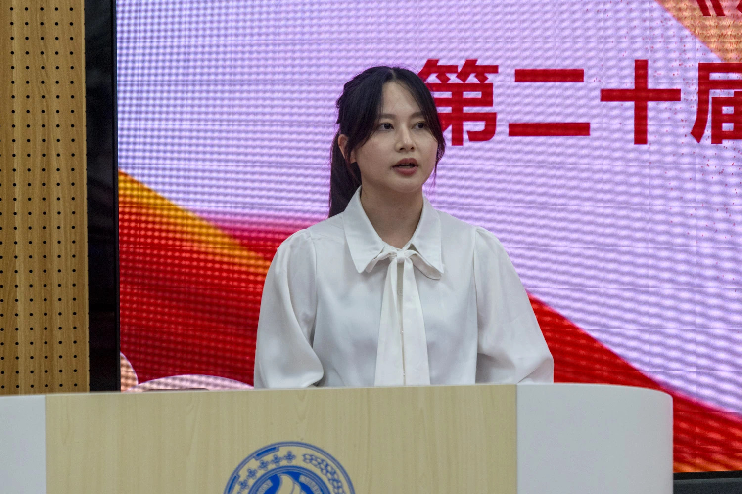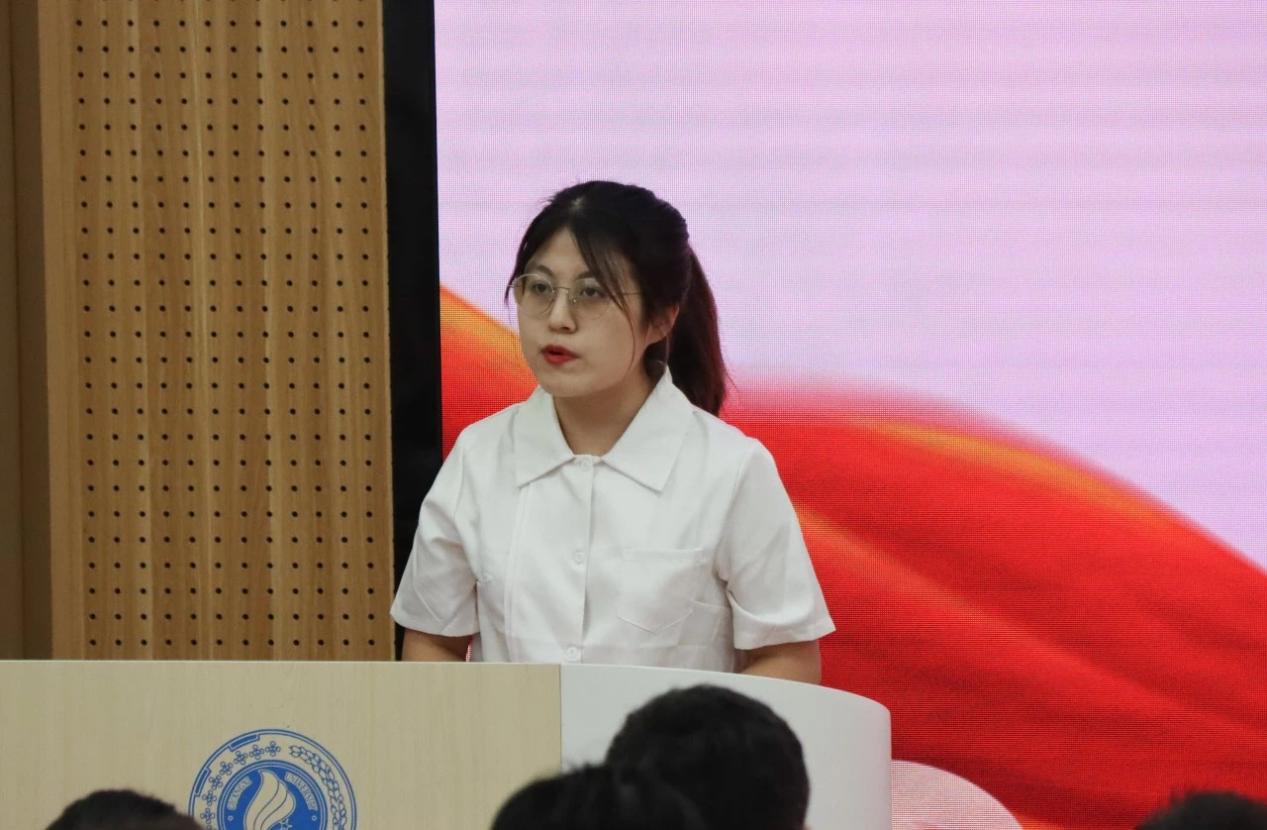 校研究生会主席团成员周奕彤作为校研究生会代表致辞。周奕彤同学对学院研究生会成立伊始至现今取得的成果表示肯定与祝贺,并希望我院新一届研究生会能够承前启后,与校研究生会携手并进,共绘校院两级研究生服务与引领工作的蓝图。