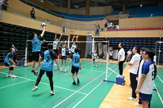 11月2日晚上进行小组赛,我院分别对阵新闻与传播学院、工商管理学院、校级功能型党支部。在紧张刺激的攻防转换、拦网扣杀中,队员们配合默契,发挥了优秀的团队合作和竞技水平。最终以大比分2:0的成绩分别战胜新闻与传播学院、校级功能型党支部,以0:2的成绩惜败工商管理学院。最终,以小组第二名的成绩晋级淘汰赛。