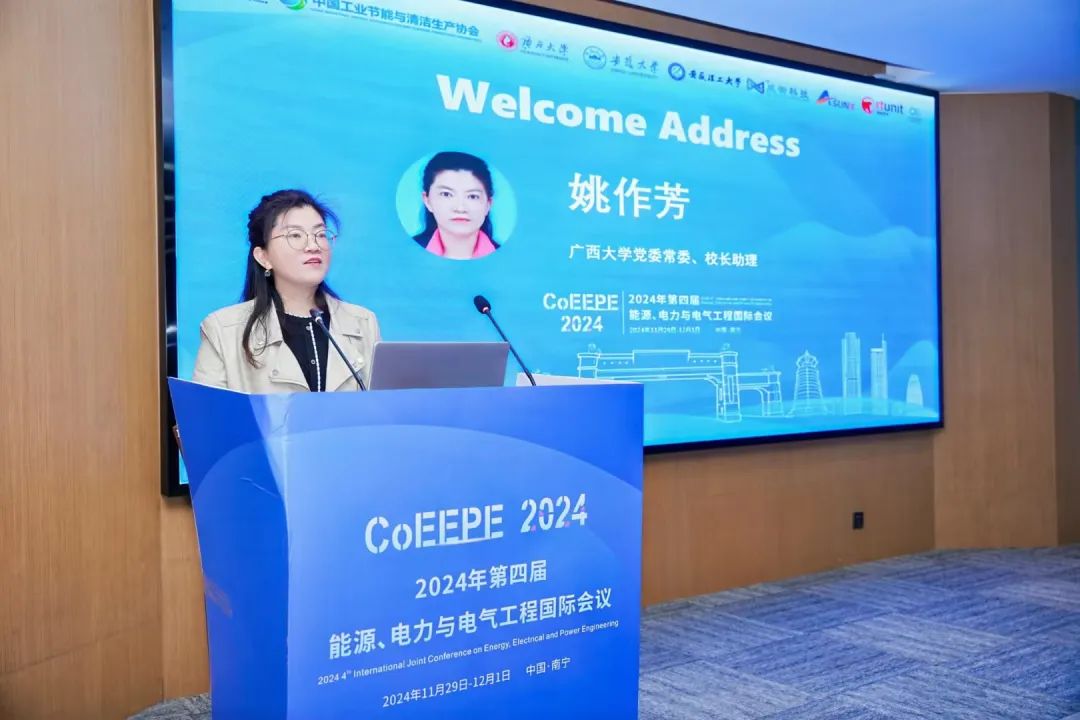 11月30日,由国际电气电子与能源工程协会,中国工业节能与清洁生产协会主办,广西大学、安徽大学和安徽理工大学承办的2024年第四届能源、电力与电气工程国际会议(CoEEPE 2024)开幕式在广西大学举行。广西大学党委常委、校长助理姚作芳出席开幕式并致辞。开云kaiyun登录入口院长武新章教授主持开幕式。 姚作芳助理出席会议 武新章院长主持开幕式 姚作芳作欢迎致辞,她首先介绍了南宁的区位优势,广西大学的校园环境、重点学科、特色专业和学术氛围,同时指出本次国际会议以“创新、未来”为主题,搭建了国际化交流平台,有助于促进能源、电力与电气科研成果的进一步转化,将会对我校的学术发展以及加强与东盟的合作具有重要意义。 安徽理工大学电气与信息工程学院院长吴卫民教授、安徽大学电气工程与自动化学院副院长潘天红教授分别代表两校致辞。吴卫民院长对广西大学近年来取得的发展成果表示祝贺,同时很荣幸来到南宁参加此次国际会议,希望在接下来的学术交流中,能够加强和其他高校的学术合作与交流。 吴卫民院长致辞 潘天红副院长提到我国目前的科技正处于快速发展中,期待专家学者在会议期间充分调动自己,碰撞出不一样的学术“火花”,共同为能源、电力与电气领域的发展贡献力量。 潘天红副院长发言 大会开幕后,东南大学陈武教授、西安理工大学尹忠刚教授、安徽大学胡存刚教授和南洋理工大学王鹏教授分别作了特邀主旨报告。他们各自介绍了电力电子、电机和电力系统等方向的最新技术发展以及相应的科研团队的最新科研成果,激起了参会人员的广泛兴趣,现场气氛热烈。 陈武教授作特邀主旨报告 尹忠刚教授作特邀主旨报告 胡存刚教授作特邀主旨报告 王鹏教授作特邀主旨报告 大会分为2个口头报告和1个展报共3个分会场,会议为从事电气工程和新能源研究的专家、学者和工程技术人员提供了一个共享科研成果和探讨前沿技术的平台。广西大学发展规划处、开云kaiyun登录入口、安徽大学、安徽理工大学、南洋理工大学、东南大学、西安理工大学等多所高校相关领域的近百名专家学者、行业精英及学生代表参加会议。 合影留念