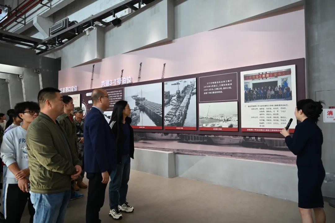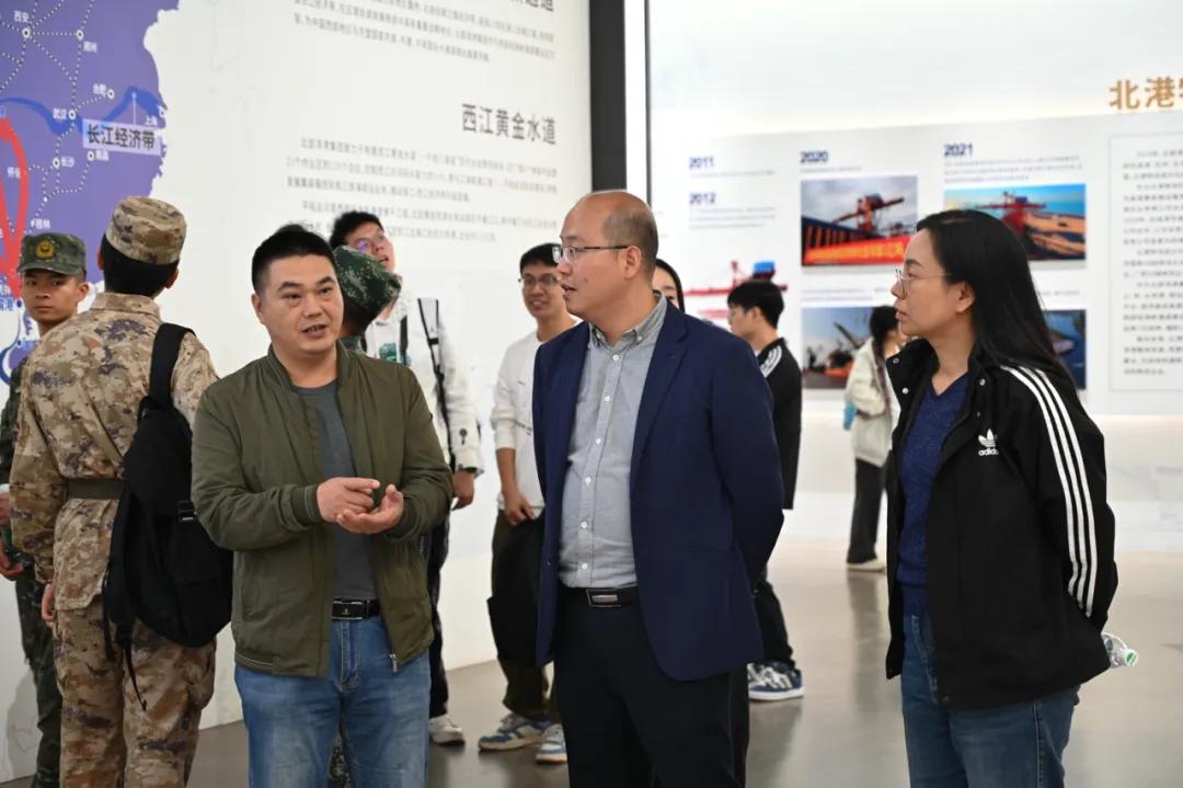 下午,实践团来到“北港故里”历史文化中心。实践团首先参观了“广西322工程”文化展厅,展厅里展示的老物件、老照片,翻开了抗美援越、秘密建港的历史。通过讲解员的讲述,全体人员深入了解了“广西322工程”的时代背景、建设目标、发挥功能、产生效果和历史意义,感受了防城港从“0”到“亿”,从海上胡志明小道启动到西部陆海新通道建设的非凡历程。随着脚步迈进2号展厅,实践团看到了防城港五十多年的沧海桑田和日新月异的变化,感受到了向海图强、向海而兴的伟大力量。