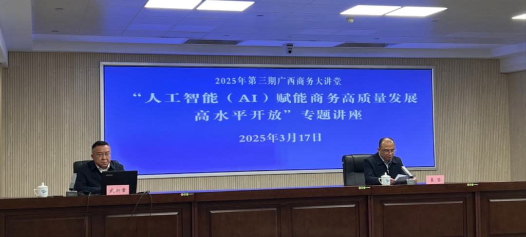 3月17日,我院院长武新章教授受邀前往广西壮族自治区商务厅参加“人工智能(AI)赋能商务高质量发展高水平开放”专题讲座,并作《拥抱人工智能,开启广西商务新时代》学术报告。此次讲座旨在加强我院与广西商务厅在学术科研,项目申报等多领域的合作,助力学院实现科研工作高质量落地发展。