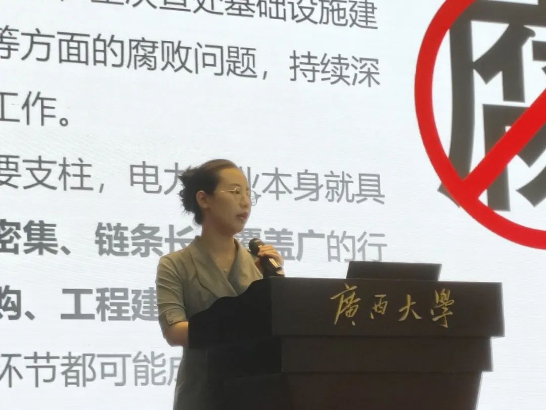 她指出,电力行业作为国家能源体系的重要支柱,其内部多个环节可能成为腐败滋生的“高压区”。对此,她郑重告诫同学们:技术可以点亮万家灯火,但若心中失去了廉洁之灯,终将走入黑暗。