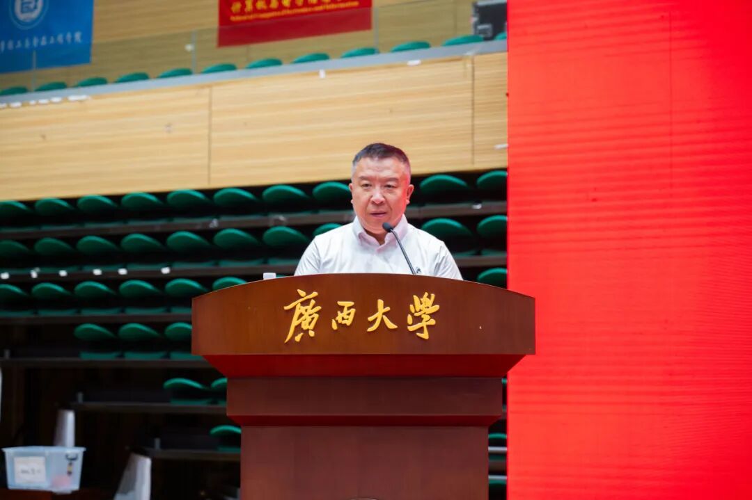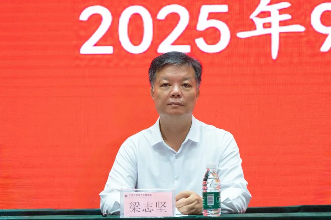 武新章院长首先向全体2025级新生致以热烈欢迎,并向为他们成长付出心血的师长和家人表达诚挚谢意。随后,他回顾了学院自1938年建系以来八十余载的光辉历程,指出在国家“双碳”战略和能源革命的时代背景下,电气工程学科迎来了前所未有的发展机遇,当代青年责无旁贷,务必珍惜学院所搭建的平台与时代赋予的使命。最后院长还为新生奉上三大“成长锦囊”:一是希望大家以青春立心,与时代同行,以前辈为榜样,将个人理想融入国家和民族发展,用奋斗书写青春华章;二是希望大家以实践立身,与现实接轨,传承西大“锄头主义”精神,把电气技术当作“铁锄头”、学科融合当作“新犁铧”,扎根广西大地,投身乡村振兴与产业升级;三是希望大家以健康立基,与身心共振,走出教室、驰骋操场,用体育锻炼砥砺体魄;遇到挑战时,积极寻求团队协作,以坚韧意志迎难而上,凭借健壮身体与强大内心稳步前行,在西大电气度过充实有意义的大学时光。