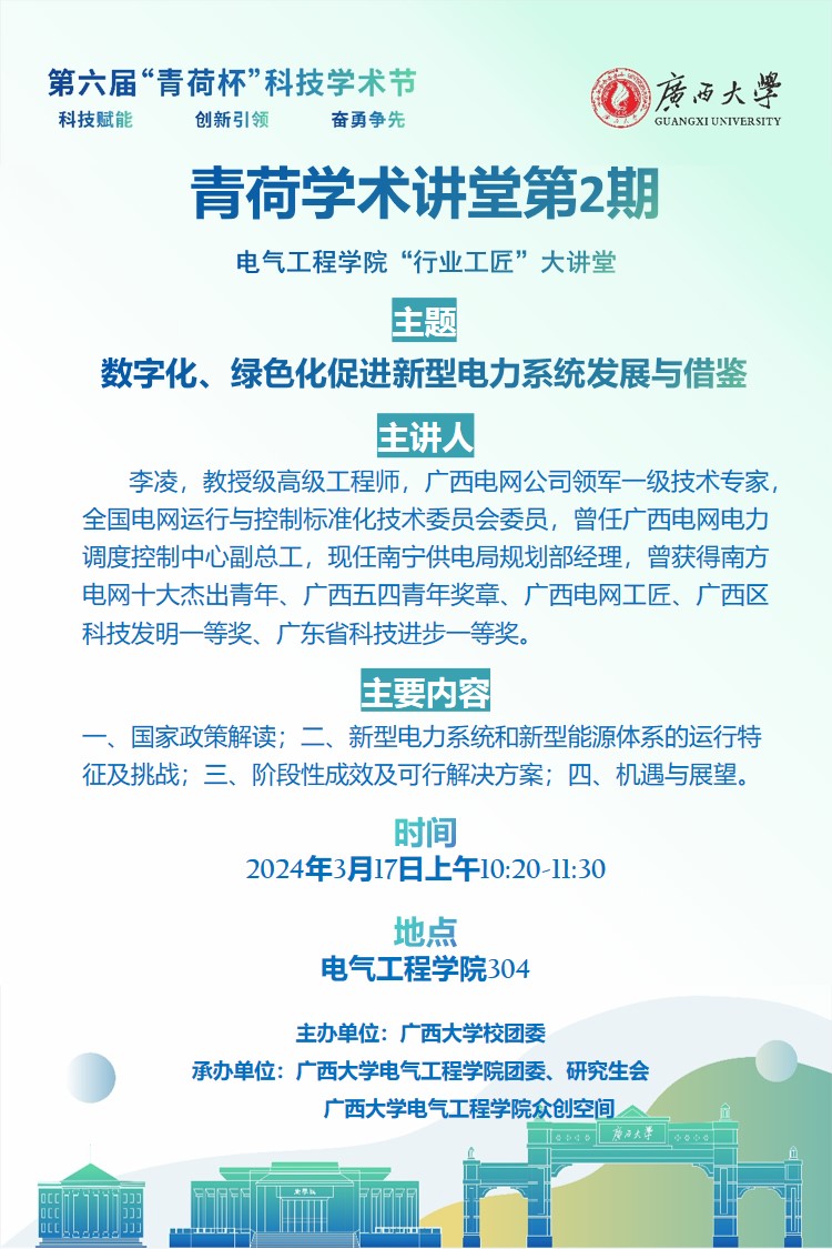 上一条:关于举办广西大学青荷学术沙龙||电气工程学院“电电科创”论坛(第3期)的通知
