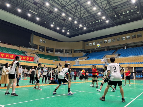 我院气排球代表队由10名队员组成。经过赛前的刻苦训练,我院气排球代表队稳扎稳打,在小组赛中凭借小组积分11分的好成绩获得小组第一的名次,顺利挺进四分之一决赛。