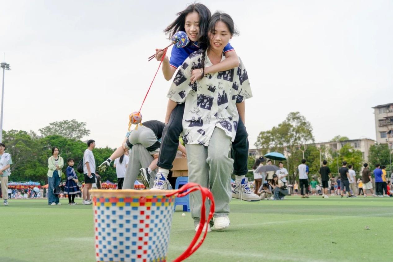 简单有趣的抢绣球吸引了同学们,选手们手持绣球,在欢声笑语中,步步为营,团结合作,为团队的胜利努力。