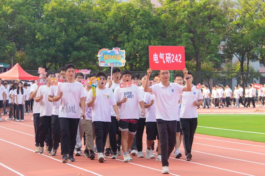 研242班的同学们怀揣青春的热情与梦想,迈着坚定的步伐走进赛场,他们将以昂扬的斗志展示出青春的风采。