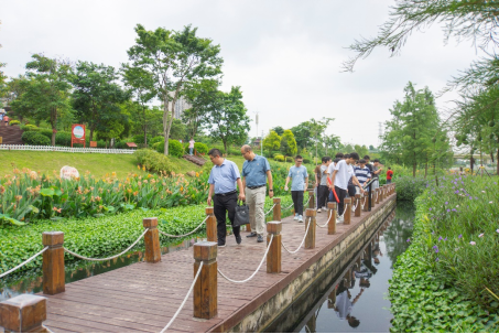 沿着习近平总书记视察那考河的足迹,土木研究生第十党支部书记李道洋和电气研究生第二党支部书记徐俊华带领各位党员同志参观那考河湿地公园。“潺潺清泉河里流,两岸树花亦斑斓。昔日黑臭小河沟,如今香艳展绚烂。”这首诗描述了那考河的“前世今生”。2017年4月,习近平总书记视察南宁那考河时曾用“流连忘返”来形容自己的感受,并赞许“广西生态优势金不换”。从一条臭水沟到荣获“中国人居环境”范例奖,那考河的华丽蜕变生动阐释了“绿水青山就是金山银山”的理念。