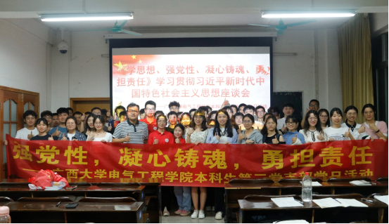 为深入开展学习贯彻习近平新时代中国特色社会主义思想主题教育,明确主题教育的重大意义、总要求、目标任务和重点措施。2023年4月27日,电气工程学院本科生第三党支部在电气工程学院304开展了学习贯彻习近平新时代中国特色社会主义思想主题教育座谈交流会。会议邀请到了广西大学马克思主义学院新时代大学生理论宣讲团做导学,马克思主义学院团委副书记、广西大学马克思主义学院新时代大学生理论宣讲团指导老师莫凯洋出席座谈会,本三支部宣传委员李浩铭老师主持座谈会。