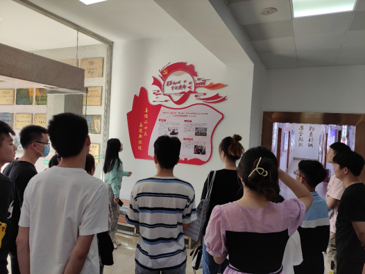 收看直播前,支部全体党员在何海伦同学的讲解下参观学习了学院新建成的党建文化墙。深入了解党的十八大以来取得的历史成就、历史经验,了解院近十年党建、党员先锋模范、取得成绩等情况。
