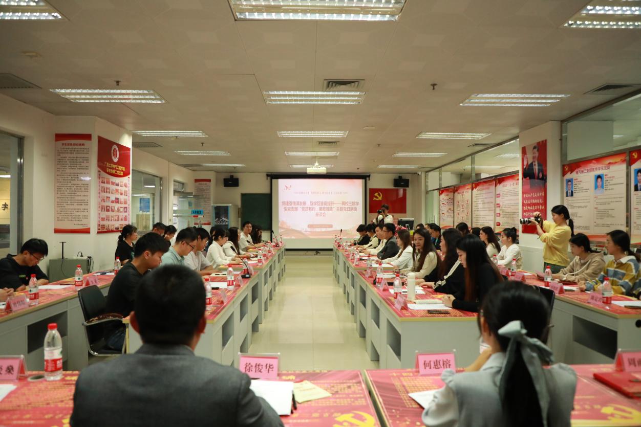 为深入学习贯彻习近平总书记关于党的建设的重要思想,加强高校基层党支部之间的交流与合作,2023年11月23日下午,开云kaiyun登录入口研究生第二党支部(以下简称为广西大学电气研二支部)与广西大学海洋学院学生党支部、广西艺术学院音乐学院学生党支部在广西大学综合楼110党员活动室共同开展了“党员有约,朋辈互助”主题党日活动座谈会。座谈会由海洋学院党委委员、专职组织员林玉华主持,两校三院党员师生代表共46人参加。