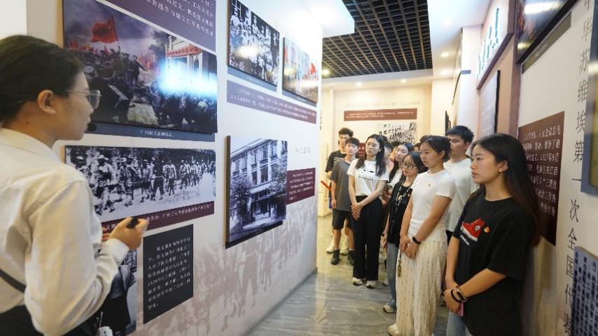 活动开始,党员们来到红色工运史陈列展馆,在讲解员的介绍下,学习了中国共产党领导下的工人运动兴起、发展和取得胜利的伟大历程,了解了1919年至1949年以来中共党史和中国工运史的重要历史交汇事件和老一辈共产党人、工人阶级解放广西、建设南宁的真实故事,进一步学习和巩固了中国共产党百年光辉历程中的“工运篇章”。